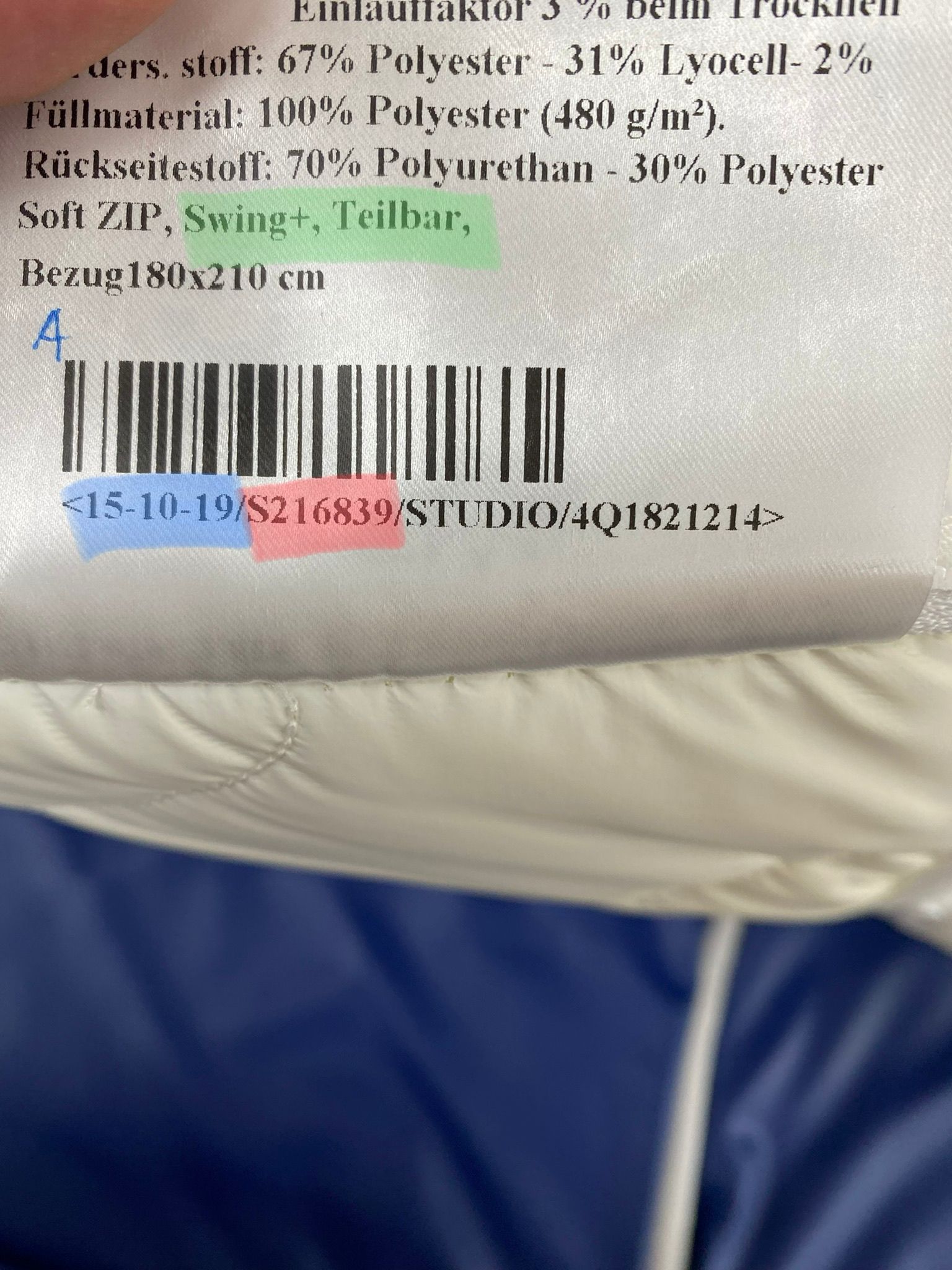 - Bezugsoberteil ab 90 cm bis 200 cm Breite