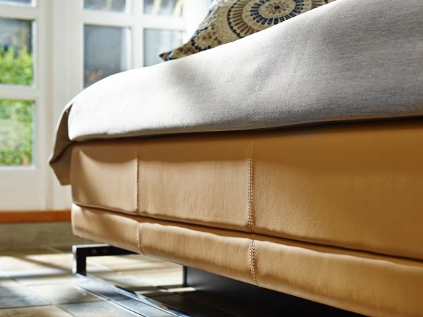 Das Bettsystem Vega, entworfen von Designer Per Weiss, besticht durch seine moderne Linienführung und Die zeitlose Optik. Die raffinierte Kombination aus Leder und dem verchromten Stahlrohrgestell verleiht VEGA einen schlichten und Formvollendeten Ausdruck. Erinnerungen an New Yorker Lofts werden hier wach, während Sie erholsam träumen.
